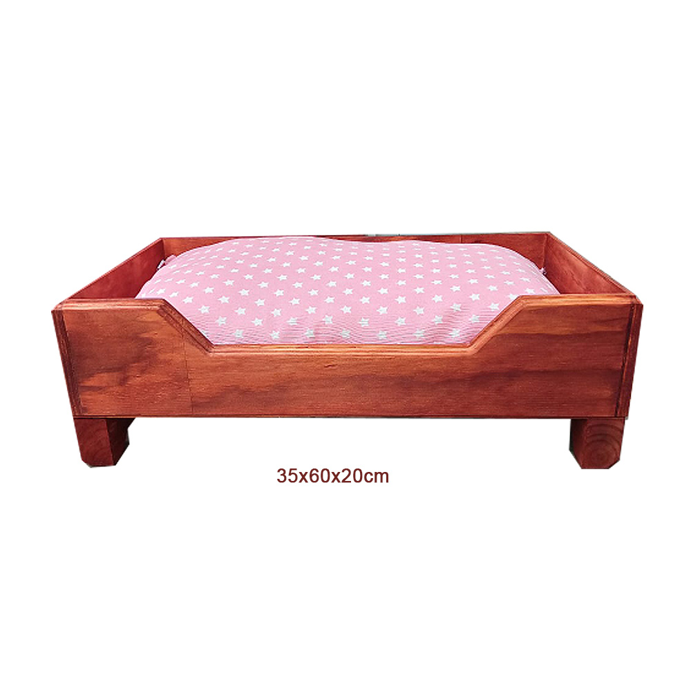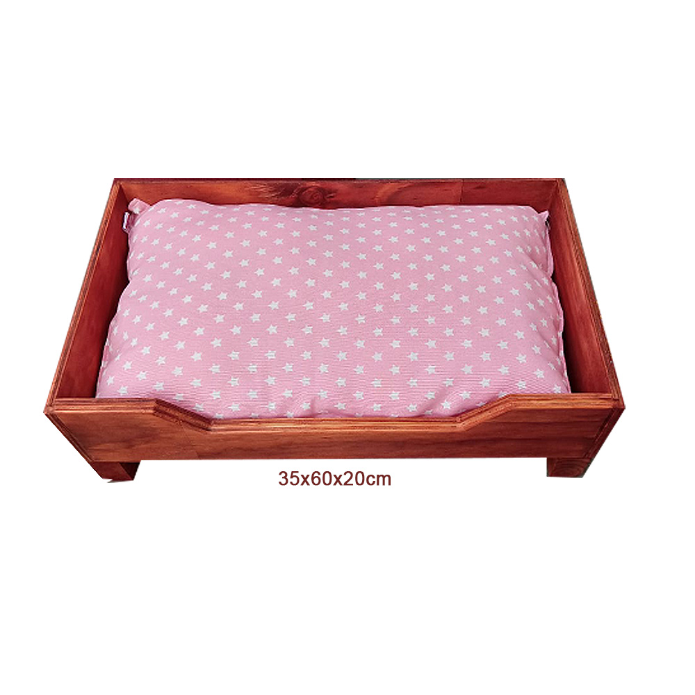 Cama de madera para mascotas de 60x35x20cm con colchón super cómodo. La tela puede variar según el stock. Contacte con nosotros antes de comprar.